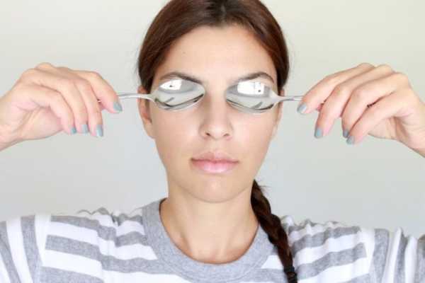 Берем две холодные столовые ложки. Нужно приложить черпала к глазам, допускается сделать несколько круговых движений. Охлажденный металл поможет устранить отечность возле глаз за несколько минут.