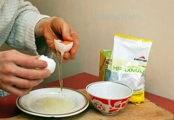 Берут куриный белок, взбивают его до пены, смешивают с 1 ч. л. меда (лучше гречишного). Состав подогревают на паровой бане, через 5-6 минут вводят туда 1 ст. л. муки, тщательно смешивают массу. Готовую маску накладывают на проблемные участки, оставляют 5-15 минут, затем умываются холодной водой.