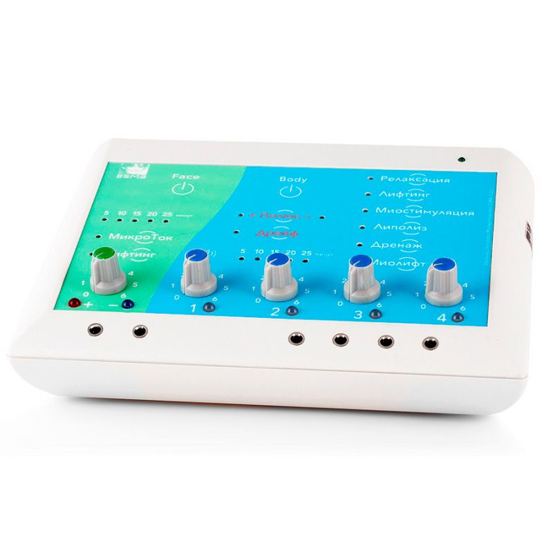 Аппарат имеет 4 независимых канала. Контактная система позволяет подключать до 8 электродов из токопроводящего силикона для тела, или до 8 электродов с липким гелиевым слоем для лица.