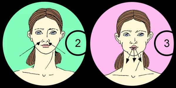 - Далее незначительные надавливания подушечками пальцев, зоны те же, направление по ходу движения лимфы.