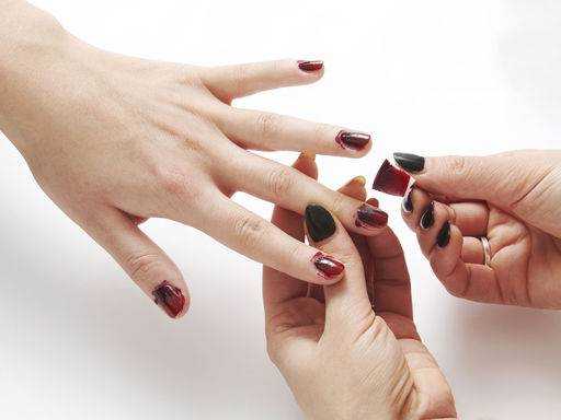 Для того, чтобы скотч не испортил маникюр и не слишком прилипал к поверхности, приклейте сначала его к коже, а только потом к ногтю.