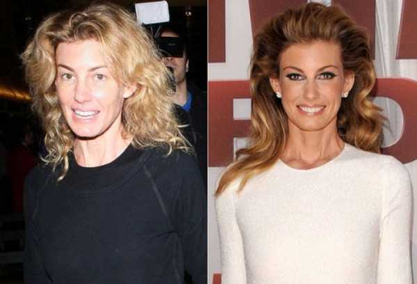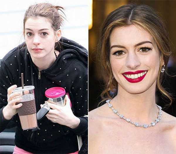 Итак, смотрим далее на подборку сравнительных фотографий знаменитостей до и после макияжа.