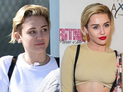 Постоянно появляясь на публике с ярким макияжем и экстравагантной прической, певица совсем не похожа на саму себя несколько лет назад – сделав некоторое время назад ультра-короткую стрижку, Майли теперь постоянно эпатирует поклонников все новыми выходками. А вот без макияжа девушка выглядит намного естественней и в чем-то даже красивее.