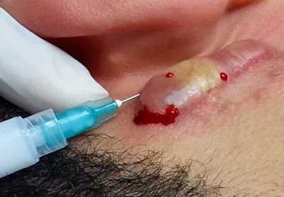 Π ΠΊΠΎΡΠΌΠ΅ΡΠΎΠ»ΠΎΠ³ΠΈΡΠ΅ΡΠΊΠΎΠΉ ΠΈ ΠΌΠ΅Π΄ΠΈΡΠΈΠ½ΡΠΊΠΎΠΉ ΠΏΡΠ°ΠΊΡΠΈΠΊΠ΅ Π»Π΅ΡΠ΅Π½ΠΈΠ΅ ΠΊΠ΅Π»ΠΎΠΈΠ΄Π½ΠΎΠ³ΠΎ ΡΡΠ±ΡΠ° ΡΡΠΈΡΠ°Π΅ΡΡΡ ΠΏΡΠΈΠΎΡΠΈΡΠ΅ΡΠ½ΠΎΠΉ Π·Π°Π΄Π°ΡΠ΅ΠΉ. ΠΡΠΈΡΠΈΠ½Π° ΡΠΎΠΌΡ β ΠΊΠΎΡΠΌΠ΅ΡΠΈΡΠ΅ΡΠΊΠΈΠΉ Π΄Π΅ΡΠ΅ΠΊΡ ΠΈ ΡΠΈΡΠΊ ΡΠ°Π·Π²ΠΈΡΠΈΡ ΠΎΠΏΡΡ ΠΎΠ»Π΅ΠΉ. Π ΠΎΡΠ°Π³Π΅ Π·Π°ΠΆΠΈΠ²Π»Π΅Π½ΠΈΡ ΠΏΠΎΠ΄Π΄Π΅ΡΠΆΠΈΠ²Π°Π΅ΡΡΡ Π²ΠΎΡΠΏΠ°Π»Π΅Π½ΠΈΠ΅, ΡΡΠΎ ΠΏΡΠΈΠ²ΠΎΠ΄ΠΈΡ ΠΊ ΡΠ°Π·ΡΠ°ΡΡΠ°Π½ΠΈΡ ΡΠΎΠ΅Π΄ΠΈΠ½ΠΈΡΠ΅Π»ΡΠ½ΠΎΠΉ ΡΠΊΠ°Π½ΠΈ. ΠΡΠ»ΠΎΠ΅ ΡΠ΅ΡΠ΅Π½ΠΈΠ΅ Π²ΠΎΡΠΏΠ°Π»ΠΈΡΠ΅Π»ΡΠ½ΠΎΠ³ΠΎ ΠΏΡΠΎΡΠ΅ΡΡΠ° ΠΈ Π΄Π°Π»ΡΠ½Π΅ΠΉΡΠ΅Π΅ Π½Π΅ΠΊΠΎΠ½ΡΡΠΎΠ»ΠΈΡΡΠ΅ΠΌΠΎΠ΅ ΡΠ°Π·ΡΠ°ΡΡΠ°Π½ΠΈΠ΅ ΠΊΠ΅Π»ΠΎΠΈΠ΄Π° ΡΠΎΠ·Π΄Π°Π΅Ρ ΠΏΡΠ΅Π΄ΠΏΠΎΡΡΠ»ΠΊΠΈ Π΄Π»Ρ ΠΎΠ±ΡΠ°Π·ΠΎΠ²Π°Π½ΠΈΡ Π΄Π΅ΡΠΌΠ°Π»ΡΠ½ΡΡ Π΄ΠΎΠ±ΡΠΎΠΊΠ°ΡΠ΅ΡΡΠ²Π΅Π½Π½ΡΡ ΠΈ Π·Π»ΠΎΠΊΠ°ΡΠ΅ΡΡΠ²Π΅Π½Π½ΡΡ ΠΎΠΏΡΡ ΠΎΠ»Π΅ΠΉ.