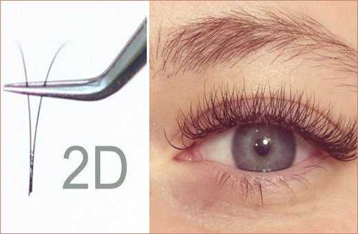 Наращивание 2d ресниц, отличается от классического: