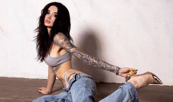 Чтобы притягивать взгляды мужчин, Марина продолжает эксперименты с внешностью: покрывает тело татуировками, тренирует кубики пресса, наращивает ресницы и не выходит из дома без макияжа.