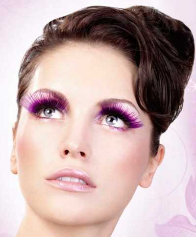 Обычно ресницы подбираются по цвету глаз женщины. Но если необходимо создать необыкновенный макияж, то используют даже самые «ядовитые» оттенки.