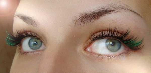 - Зеленый цвет ресниц подойдёт рыжеволосым девушкам, обладательницам светлых глаз. Также изумрудный оттенок замечательно оттенит карие и каре-зеленые глаза. Однако светло-зеленые и светло-коричневые глаза также прекрасно смотрятся в обрамлении зеленых ресничек.