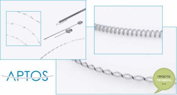 Π ΡΠ°ΠΌΠΊΠ°Ρ ΡΡΠΎΠΉ ΠΏΡΠΎΡΠ΅Π΄ΡΡΡ Π±ΠΈΠΎΡΠΎΠ²ΠΌΠ΅ΡΡΠΈΠΌΡΠ΅ Π½ΠΈΡΠΈ, ΠΈΠ·Π³ΠΎΡΠΎΠ²Π»Π΅Π½Π½ΡΠ΅ ΠΈΠ· ΠΏΠΎΠ»ΠΈΠΏΡΠΎΠΏΠΈΠ»Π΅Π½Π°, ΠΏΠΎΠΌΠ΅ΡΠ°ΡΡΡΡ Π² ΠΌΡΠ³ΠΊΠΈΠ΅ ΡΠΊΠ°Π½ΠΈ Π»ΠΈΡΠ° ΡΠ΅ΡΠ΅Π· Π½Π΅Π±ΠΎΠ»ΡΡΠΈΠ΅ (2-3 ΠΌΠΌ) ΡΠ°Π·ΡΠ΅Π·Ρ. ΠΠΎ Π²ΡΠ΅ΠΉ Π΄Π»ΠΈΠ½Π΅ Π½ΠΈΡΠ΅ΠΉ Aptos ΡΠ°ΡΠΏΠΎΠ»ΠΎΠΆΠ΅Π½Ρ ΠΌΠΈΠΊΡΠΎΡΠΊΠΎΠΏΠΈΡΠ΅ΡΠΊΠΈΠ΅ Π½Π°ΡΠ΅ΡΠΊΠΈ (ΡΠ²ΠΎΠ΅Π³ΠΎ ΡΠΎΠ΄Π° ΠΊΡΡΡΠΊΠΈ), Ρ ΠΏΠΎΠΌΠΎΡΡΡ ΠΊΠΎΡΠΎΡΡΡ ΠΊΠΎΠΆΠ° ΡΠΌΠ΅ΡΠ°Π΅ΡΡΡ, Π° Π·Π°ΡΠ΅ΠΌ ΡΠΈΠΊΡΠΈΡΡΠ΅ΡΡΡ Π² Π½ΡΠΆΠ½ΠΎΠΌ ΠΏΠΎΠ»ΠΎΠΆΠ΅Π½ΠΈΠΈ. Β