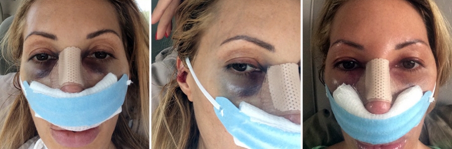 Носовая тампона может быть удалена через 1-3 дня после операции, а рельсовые и кожные швы снимаются примерно через 10-14 дней. Шину на носу снимают впервые через неделю и меняют пластырь. Здесь вы впервые сможете осмотреть свой «новый» нос со всех сторон. Потом нос снова заклеят пластиковыми полосками, которые прикрепляют на неделю. Хотя успех операции можно оценить относительно вскоре после процедуры, отек может исчезнуть через несколько месяцев, прежде чем можно будет должным образом оценить окончательный результат.