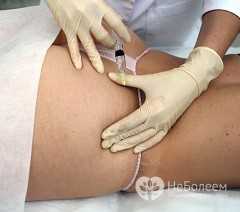 - Затем с помощью специальной иглы на глубину около 0,5 см вводится препарат в заранее намеченной зоне.