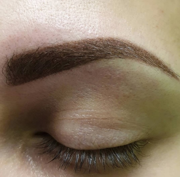 Цвет пигмента будет сразу довольно ярким, но не стоит беспокоиться — окончательный эффект проявится спустя 2-3 недели и брови приобретут естественный вид, как будто их слегка подвели карандашом и припудрили тенями.
