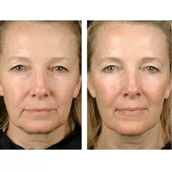 Кожа подтягивается и уплотняется, исчезают проявления гравитационного птоза, отеки вокруг глаз и нависание верхнего века, растяжки и целлюлит становятся менее заметными.