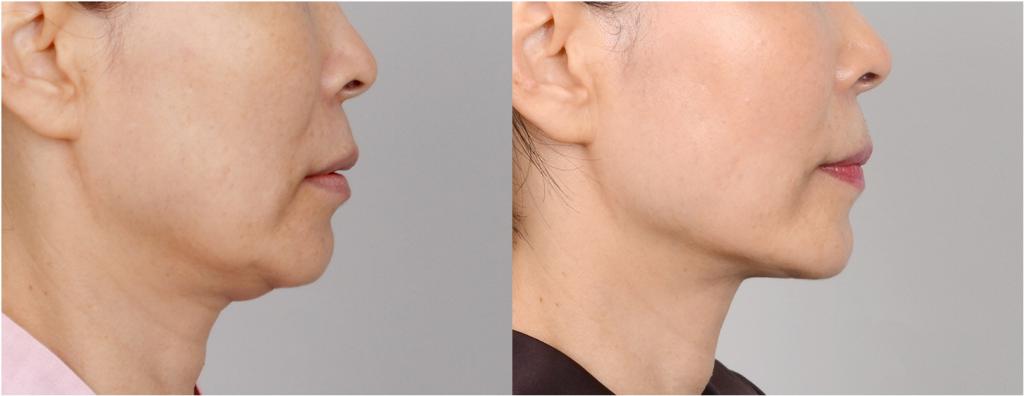 В результате образования коллагена кожа восстанавливается и становится более упругой. Это помогает избавиться от обвисания кожи, которое создает эффект двойного подбородка.