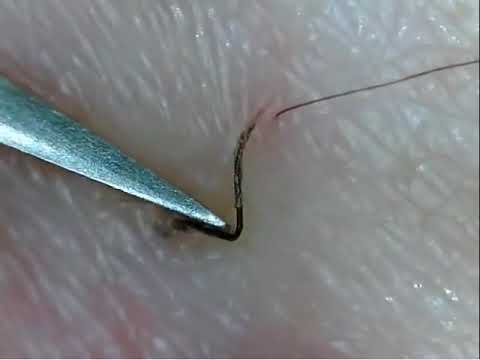 - Волосок поддевают остриём и вытаскивают наружу.