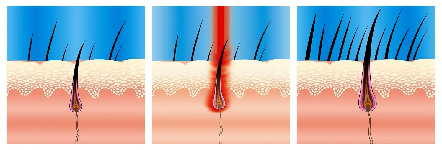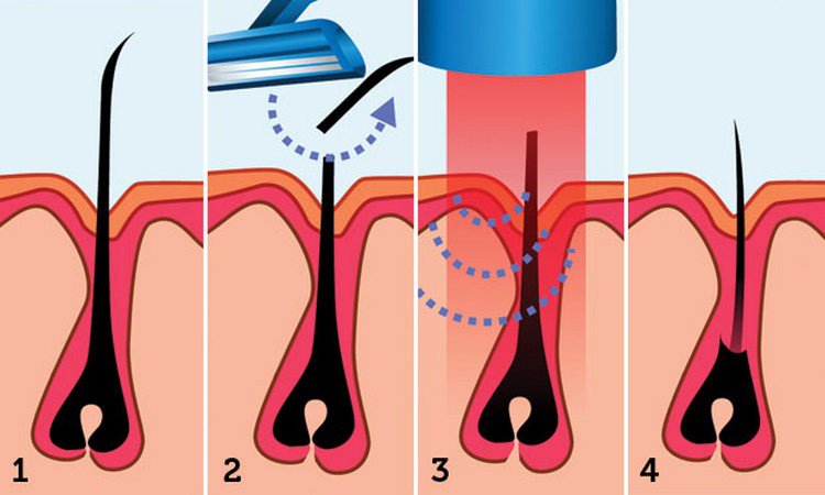 Любые методы эпиляции или депиляции при помощи различных приспособлений и специальных кремов, способны удалить часть волоса, оставив под кожей волосяную луковицу. При постоянном использовании данных процедур можно заметить, что волосы стают все реже и тоньше, но при этом не видно поверхности кожи, она постепенно начинает грубеть и утолщаться из-за ороговевшего эпидермиса, который в обычном процессе слущивается, а теперь они закрывает устья фолликул.
