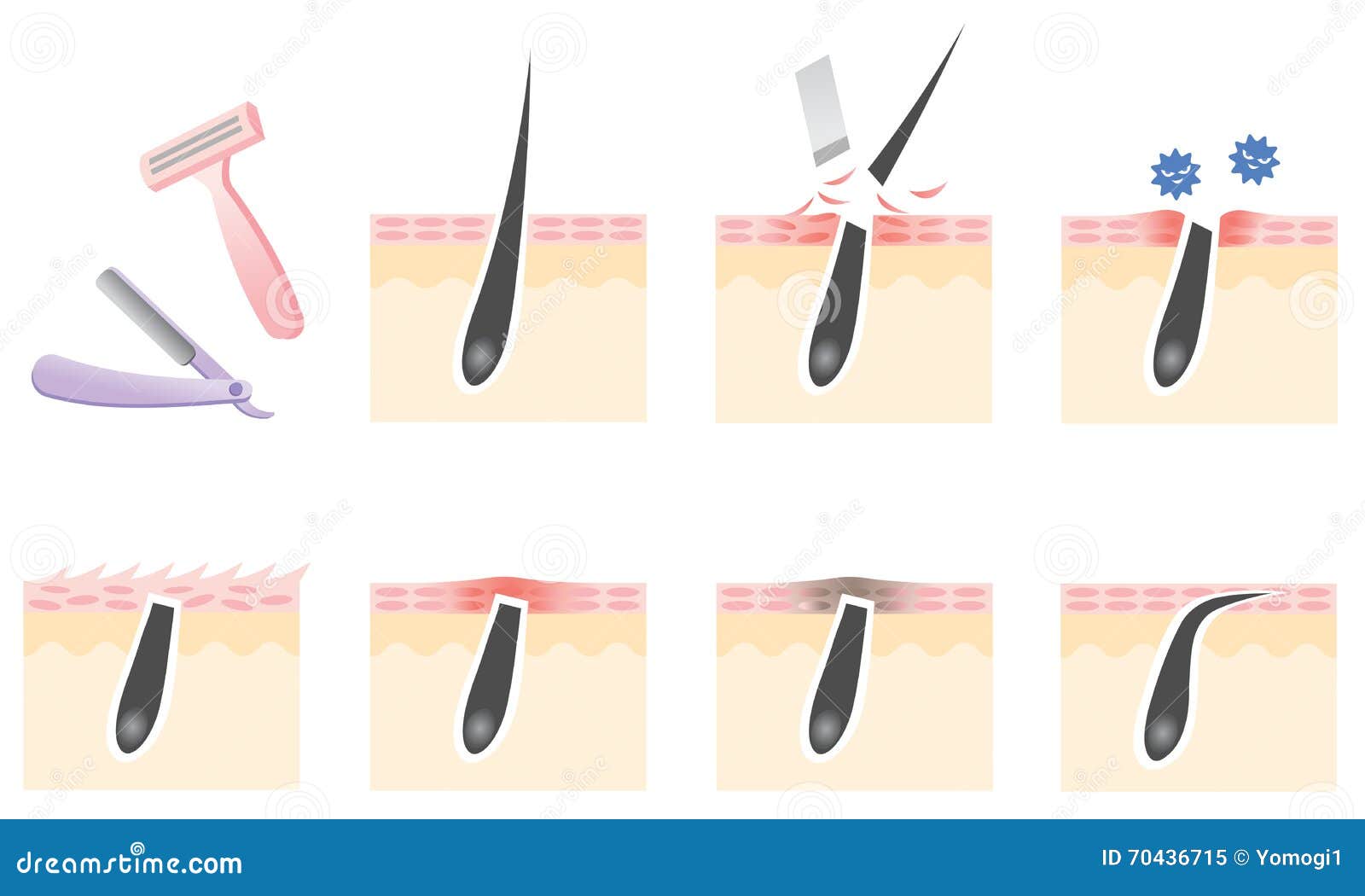 Самая частая причина вросших волос — удаление волос. Звучит нелогично, правда? Но каждый раз, когда мы тщательно удаляем волосы с поверхности, есть вероятность, что они снова отрастут в неправильном направлении.Вот почему скопление вросших волос также называют шишками от бритвы. Но вросшие волосы появляются не только в результате использования бритвы — они могут появиться в результате восковой эпиляции, выщипывания, удаления волос с помощью химических средств или любого другого метода удаления волос.
