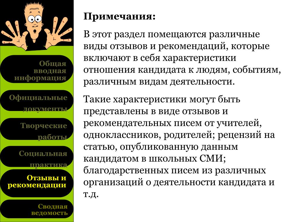 Существует несколько видов отзывов.