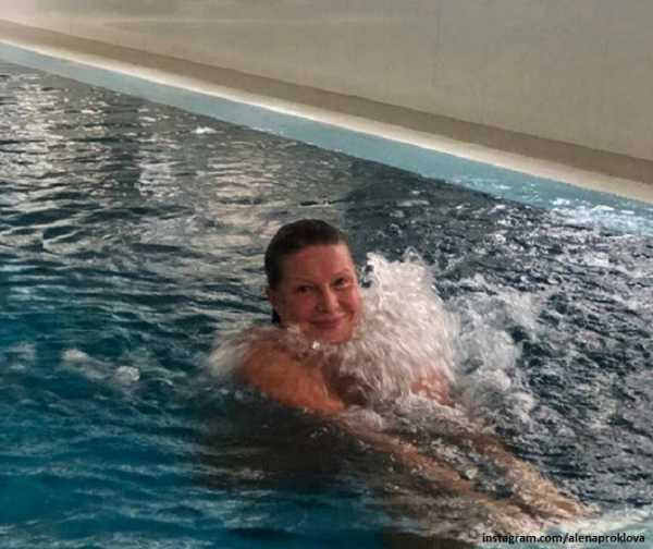 Елена Проклова в бассейне«Делюсь с вами рецептом: ✔️ Желток одного яйца ✔️ Чайная ложка мёда ✔️ Чайная ложка касторового масла ✔️ Столовая ложка сока алое ✔️ Столовая ложка оливкового масла