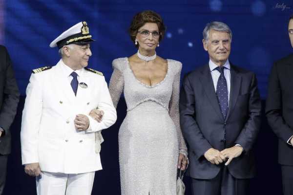 Софи Лорен приехала на мероприятии в красивом переливающемся на солнце платье с глубоким декольте. Оно было настолько глубоким, что стоявший рядом капитан не мог отвести взгляд от Лорен.