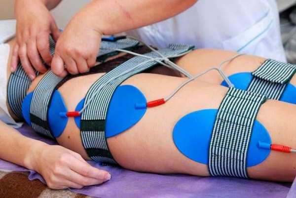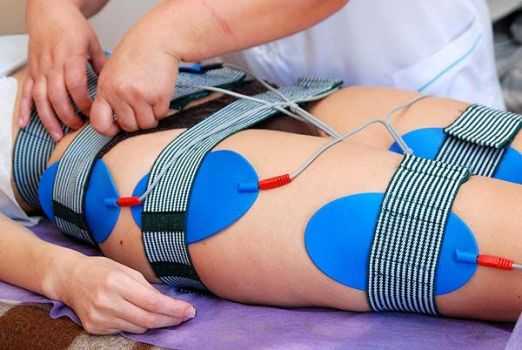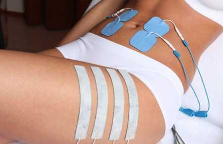 В кабинете вам придется раздеться до нижнего белья и лечь на кушетку. После этого специалист располагает электроды на нужных участках тела, закрепляя специальными ремнями, как на фото. В качестве токопроводящей субстанции может использоваться обычная теплая вода, или специальный гель. В некоторых салонах применяют электроды одноразового действия, напоминающие обычный лейкопластырь. В этом случае, кожу необходимо тщательно очистить от потожировых выделений и влаги.