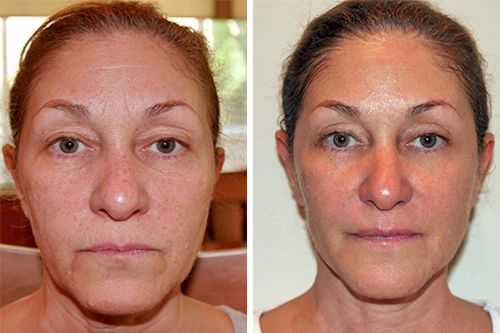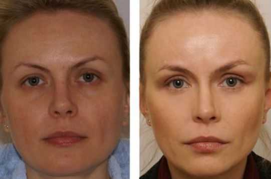 — фото: до и после сеансов воздействия на кожу и мышцы лица с помощью электрических импульсов