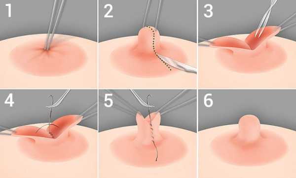Есть разные варианты проведения хирургического исправления запавших сосков.