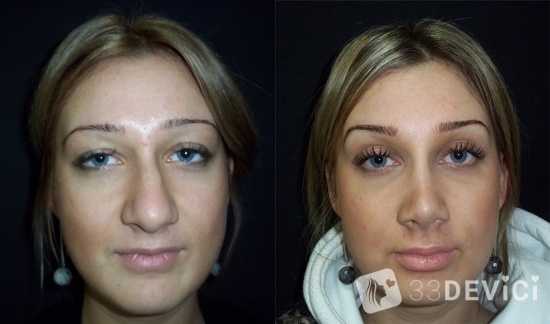 Фото до и после проведения безоперационной ринопластики (нажмите на фото для просмотра в полном размере):
