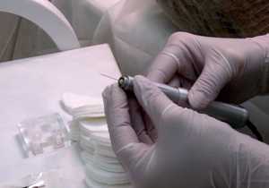 После открытия в присутствии клиента упаковки со стерильной иглой и смешения красок для выполнения татуажа осуществляется заполнение полученной смесью машинки, которая по внешнему виду напоминает ручку для письма.