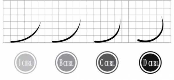 Об изгибах искусственных ресниц стоит поговорить подробнее. Их различают целых шесть, и все они обозначены буквенными индексами.